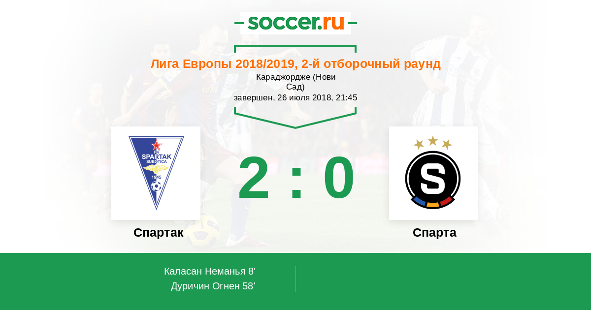 Протокол матча Спартак Суботица против Спарта