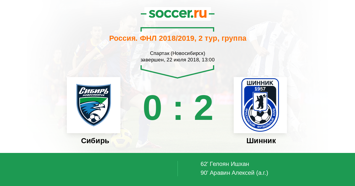 Протокол матча Сибирь против Шинник
