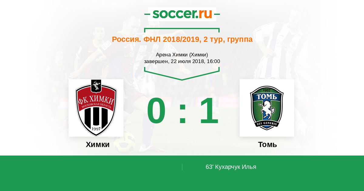 Протокол матча Химки против Томь