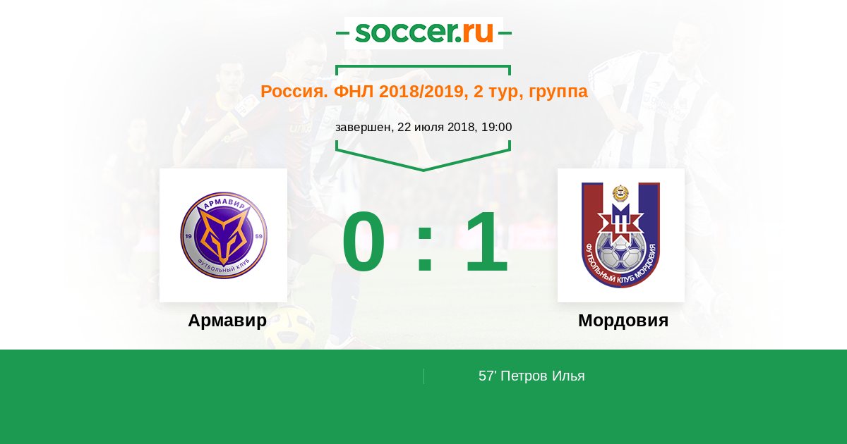 Протокол матча Армавир против Мордовия