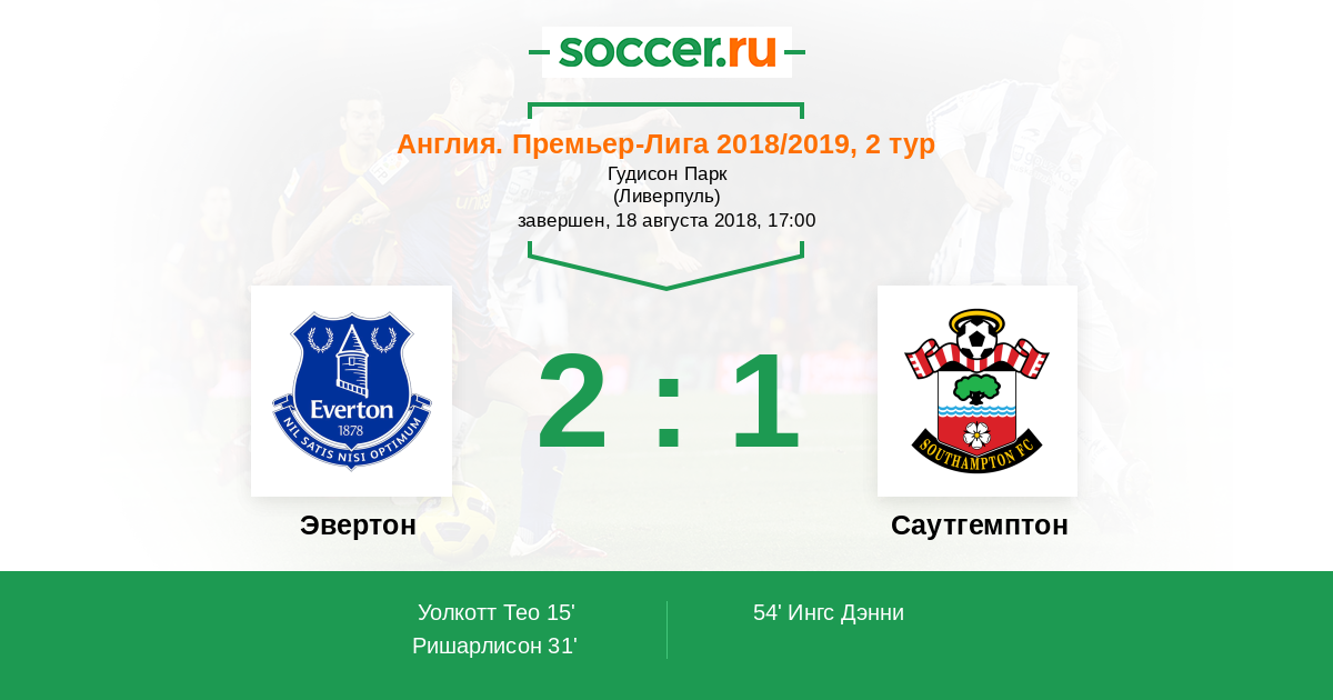 Протокол матча Эвертон против Саутгемптон