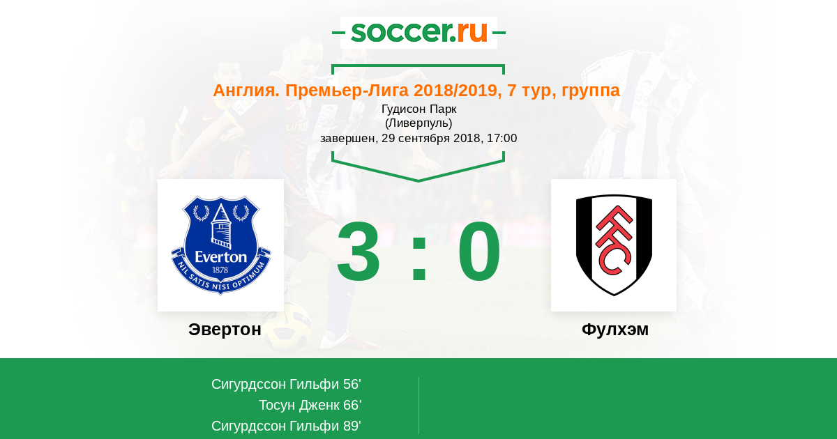 Протокол матча Эвертон против Фулхэм