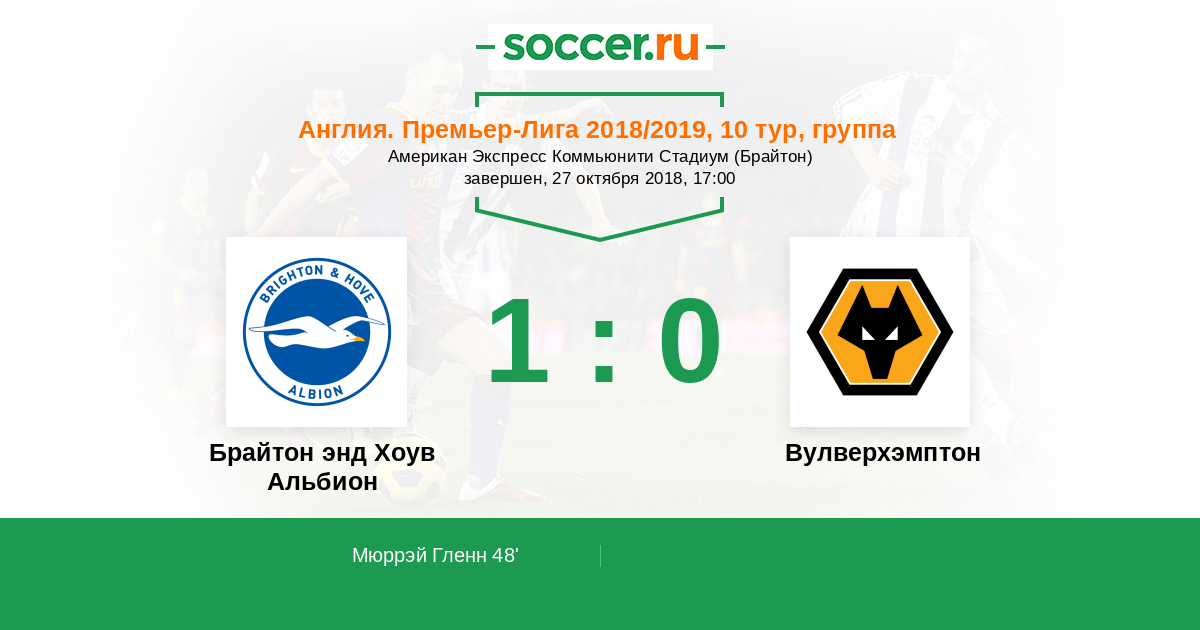 Протокол матча Брайтон энд Хоув Альбион против Вулверхэмптон