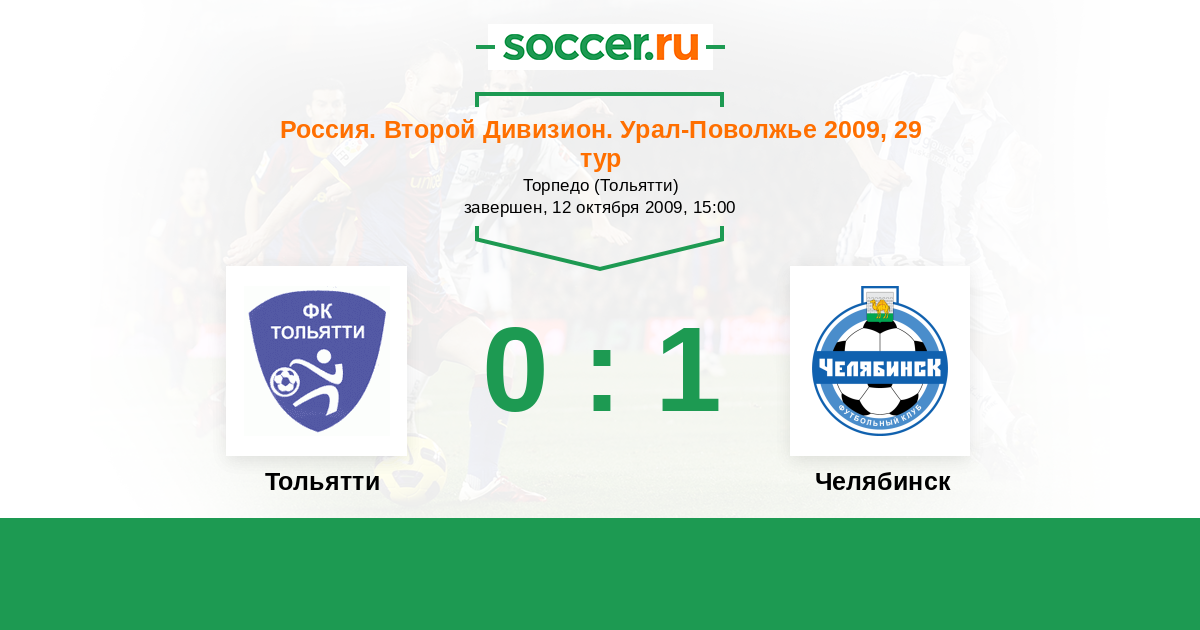 Россия. Вторая лига. Группа 4 12.10.2009 Тольятти Логотип футбольный клуб Тольятти 0:1 Логотип футбольный клуб Челябинск Челябинск