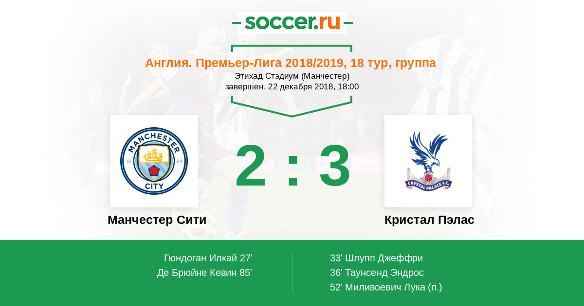 Протокол матча Манчестер Сити против Кристал Пэлас