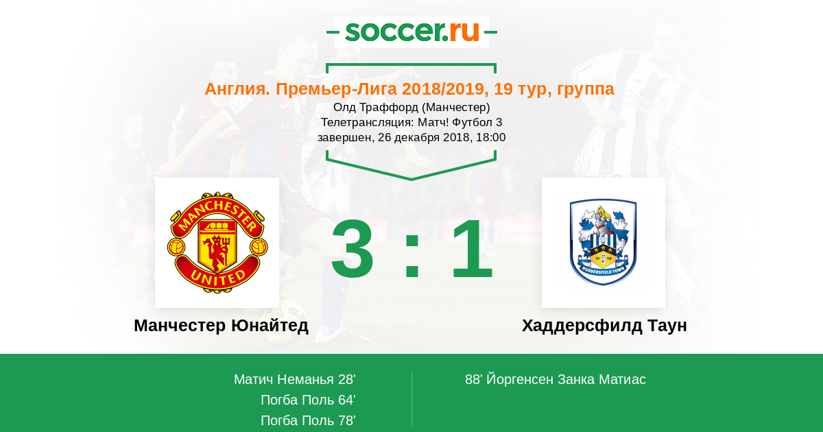 Протокол матча Манчестер Юнайтед против Хаддерсфилд Таун