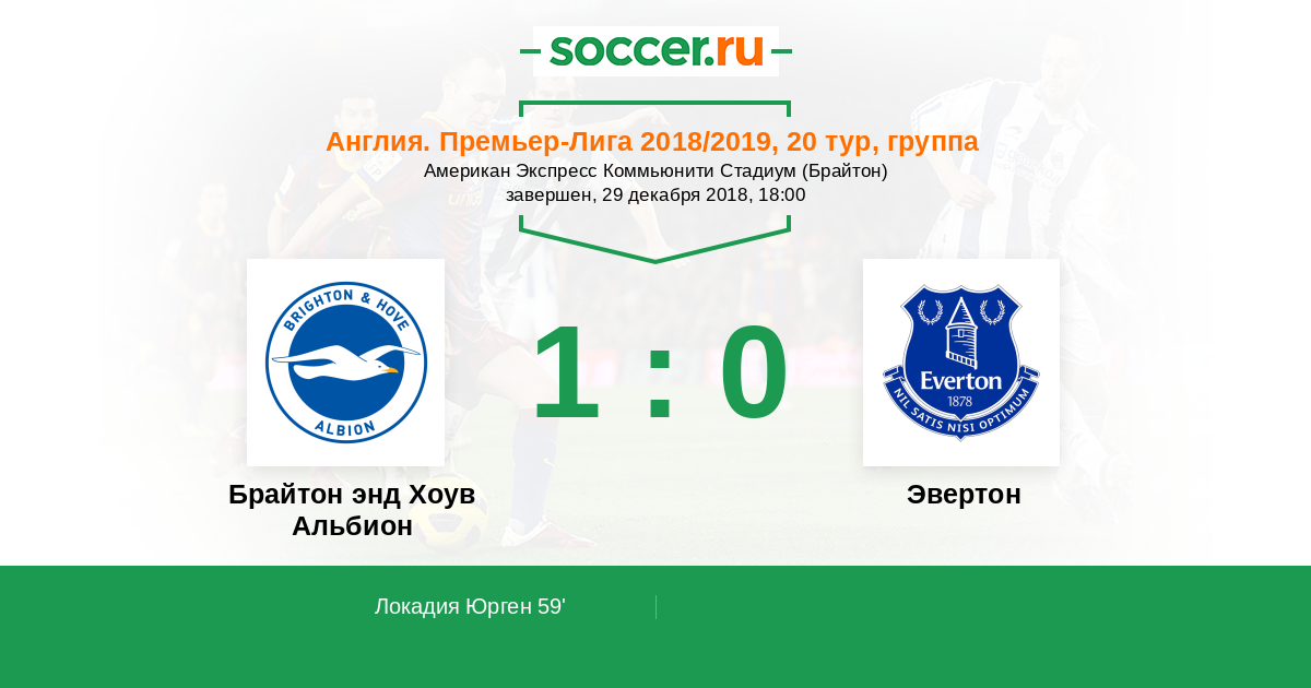 Протокол матча Брайтон энд Хоув Альбион против Эвертон