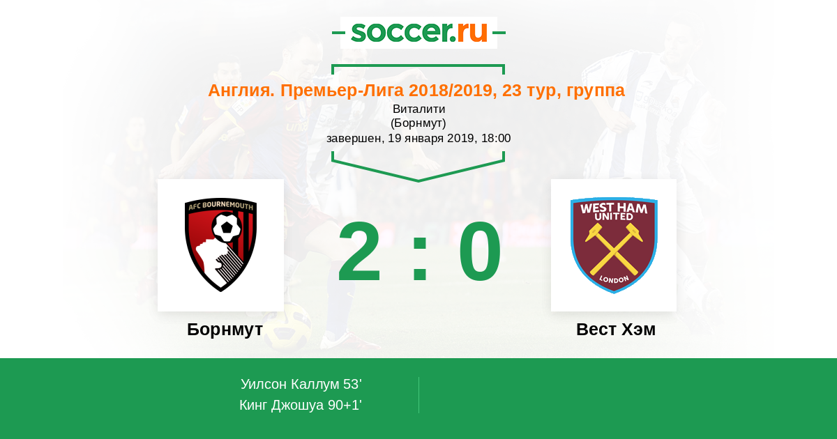 Гол90+1' (2:0) Кинг Джошуа (17) (Брукс Давид (20))