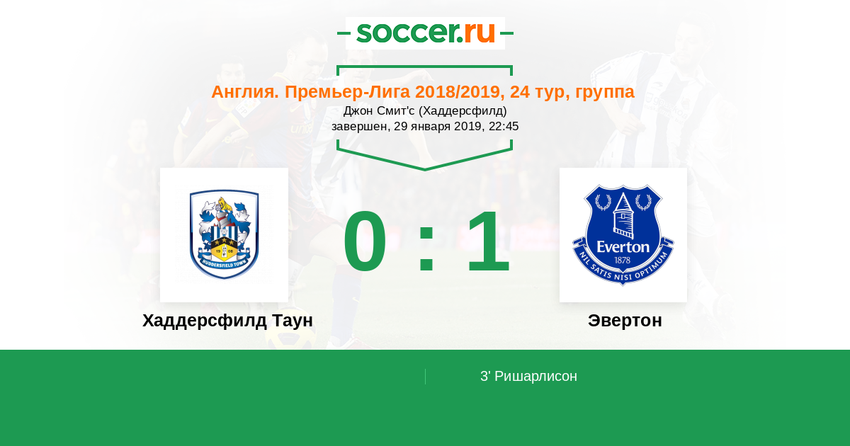 Протокол матча Хаддерсфилд Таун против Эвертон