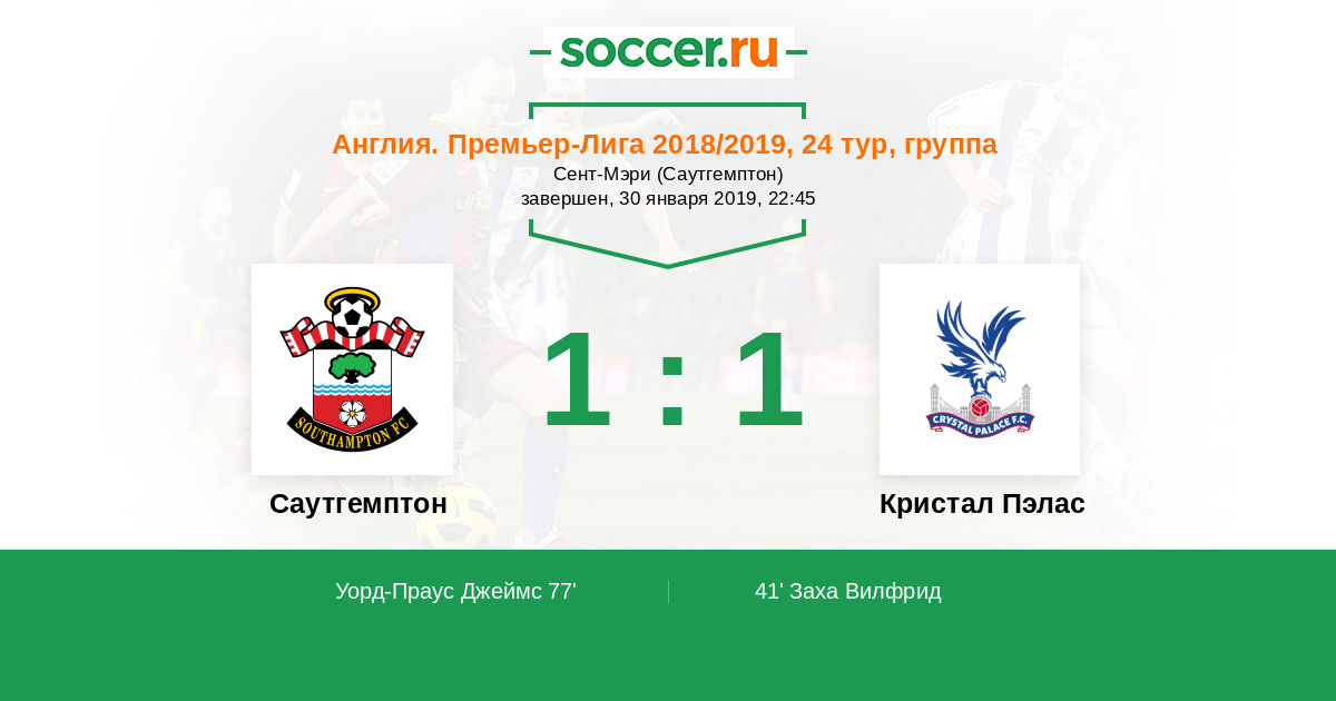 Протокол матча Саутгемптон против Кристал Пэлас