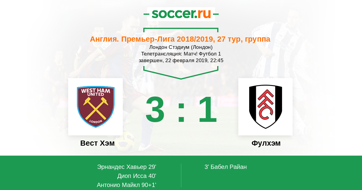 29' (1:1) Эрнандес Хавьер (17) (Огбонна Анжело (21))