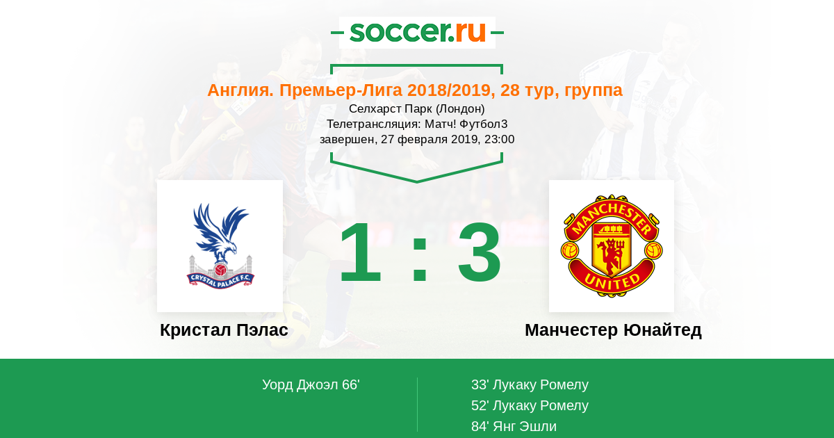 Протокол матча Кристал Пэлас против Манчестер Юнайтед