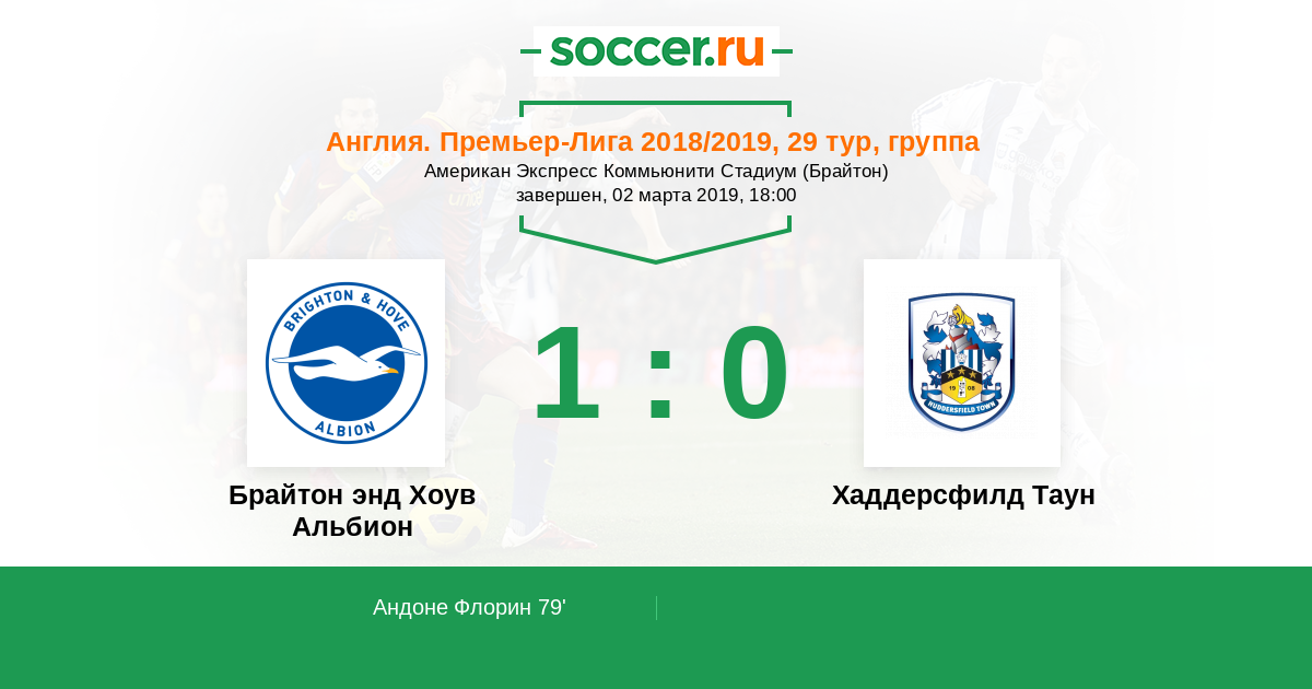 Протокол матча Брайтон энд Хоув Альбион против Хаддерсфилд Таун