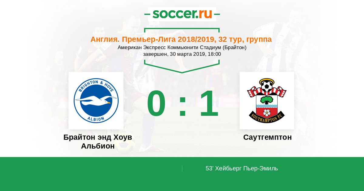Протокол матча Брайтон энд Хоув Альбион против Саутгемптон