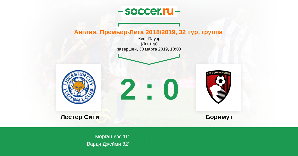 Протокол матча Лестер Сити против Борнмут