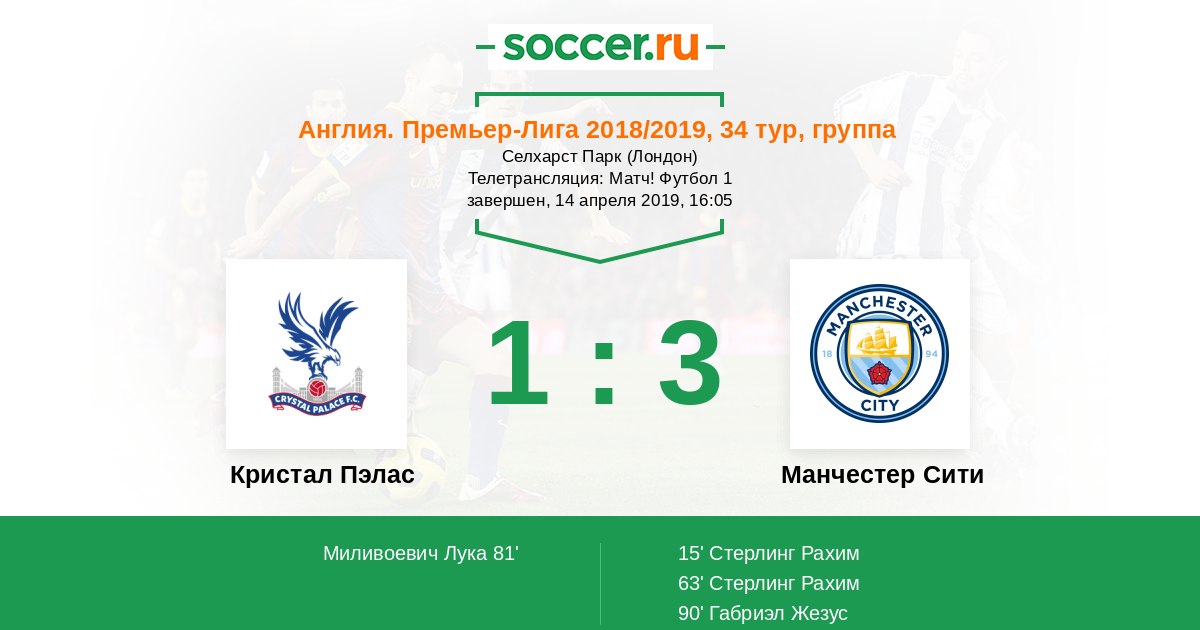10' Давид Сильва посылает мяч в штрафную на Рахим Стерлинг(Манчестер Сити),но несмотря на открытое пространство перед воротами,он выстрелил в правую штангу мимо правой штанги