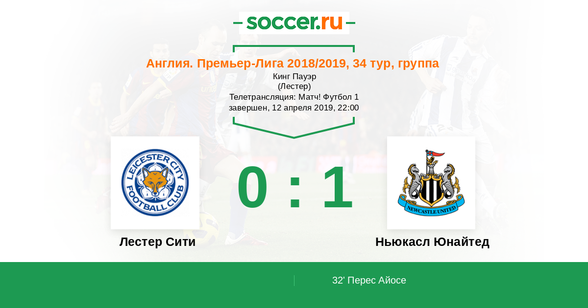 Протокол матча Лестер Сити против Ньюкасл Юнайтед