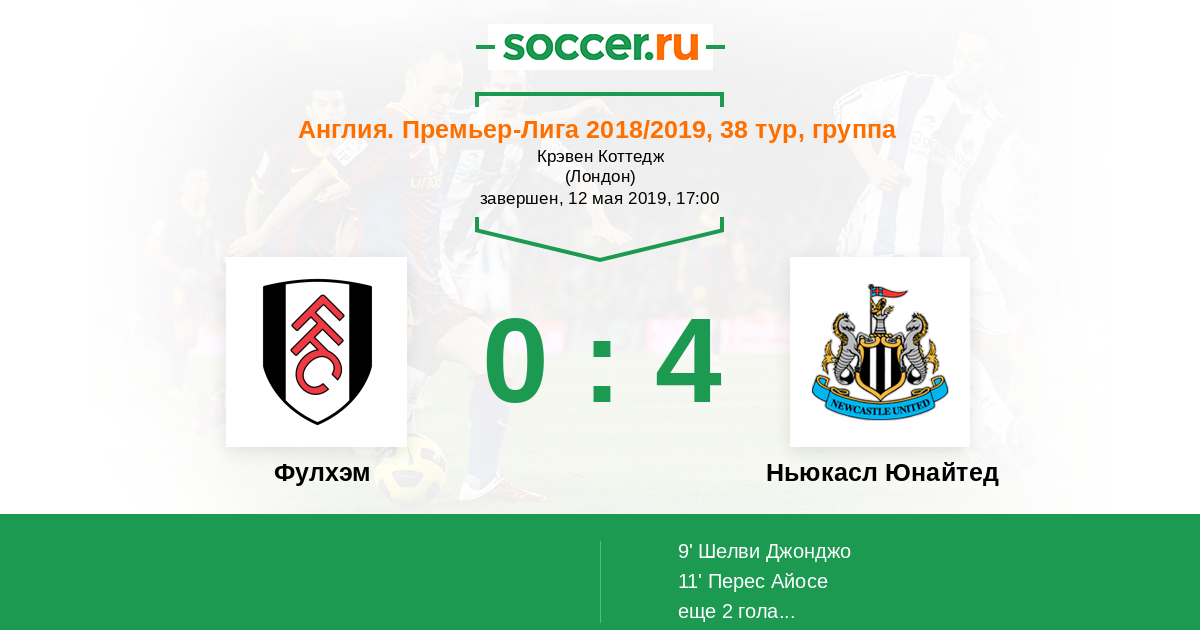 Протокол матча Фулхэм против Ньюкасл Юнайтед