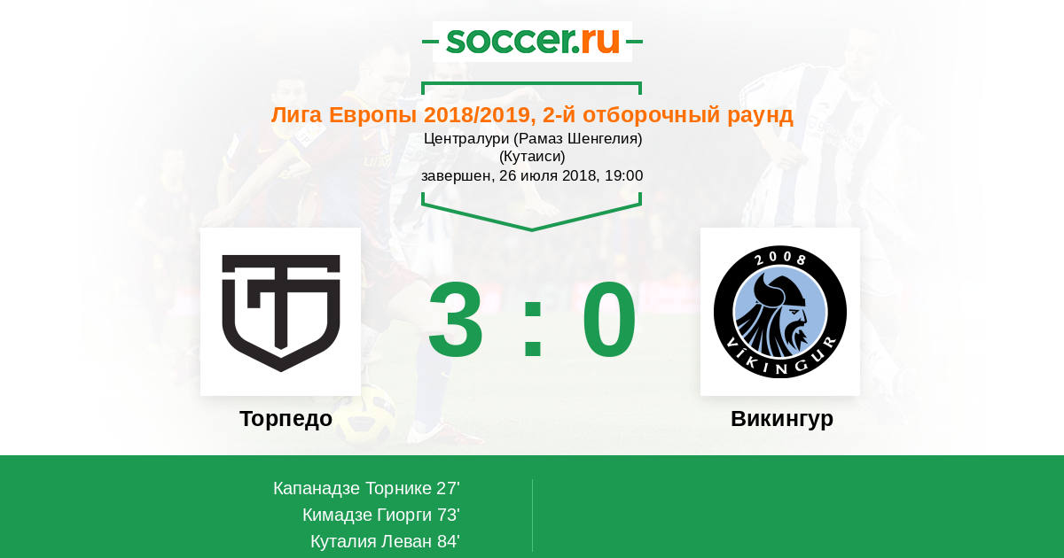 Протокол матча Торпедо против Викингур
