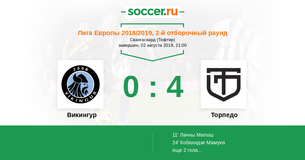 Протокол матча Викингур против Торпедо