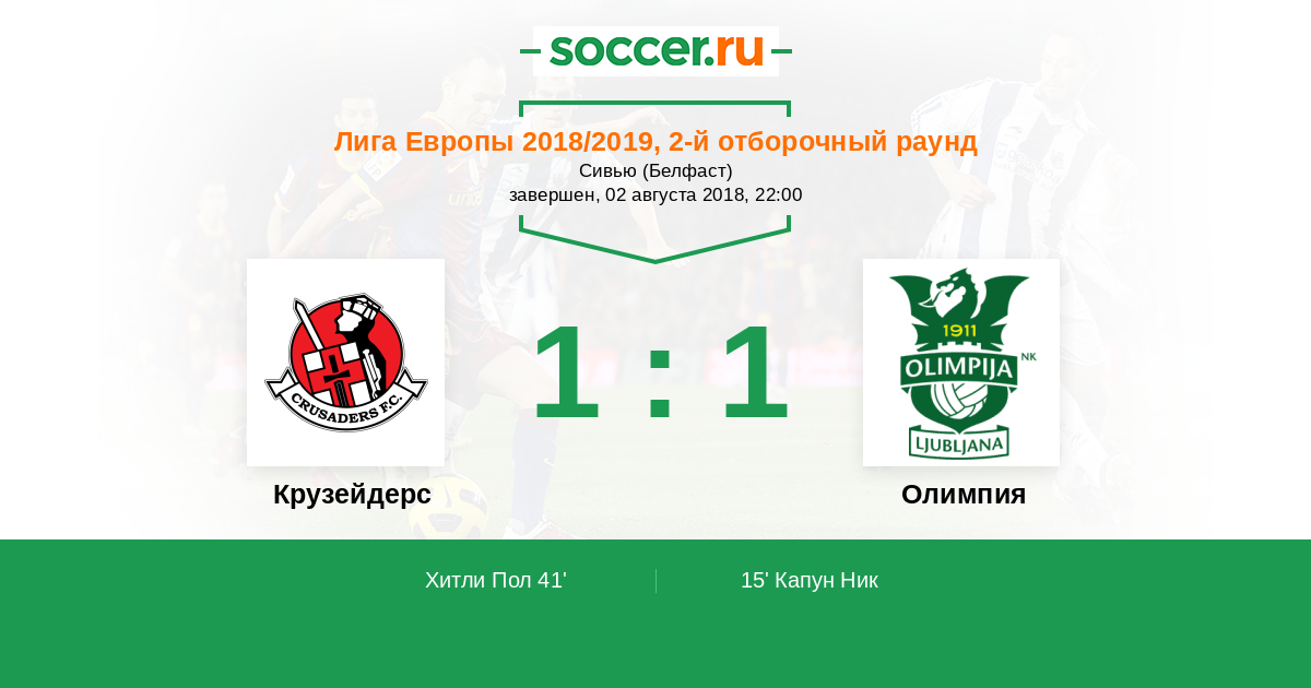 Протокол матча Крузейдерс против Олимпия