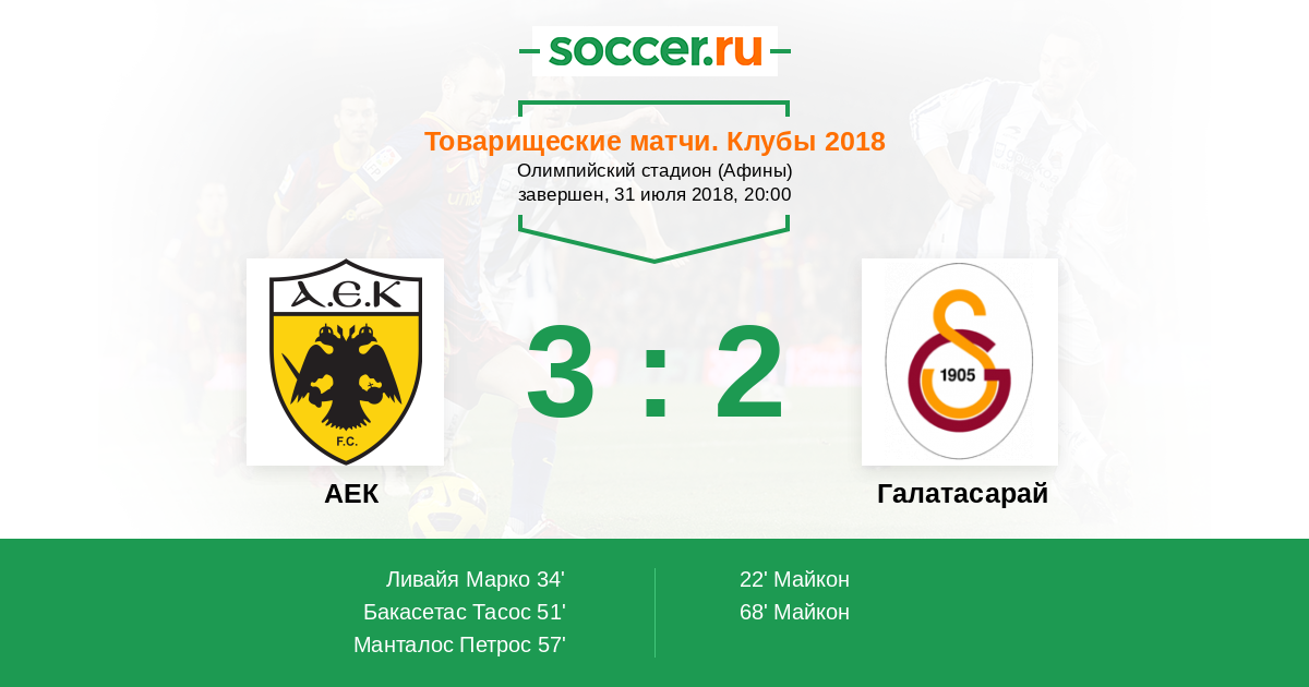 Протокол матча АЕК против Галатасарай