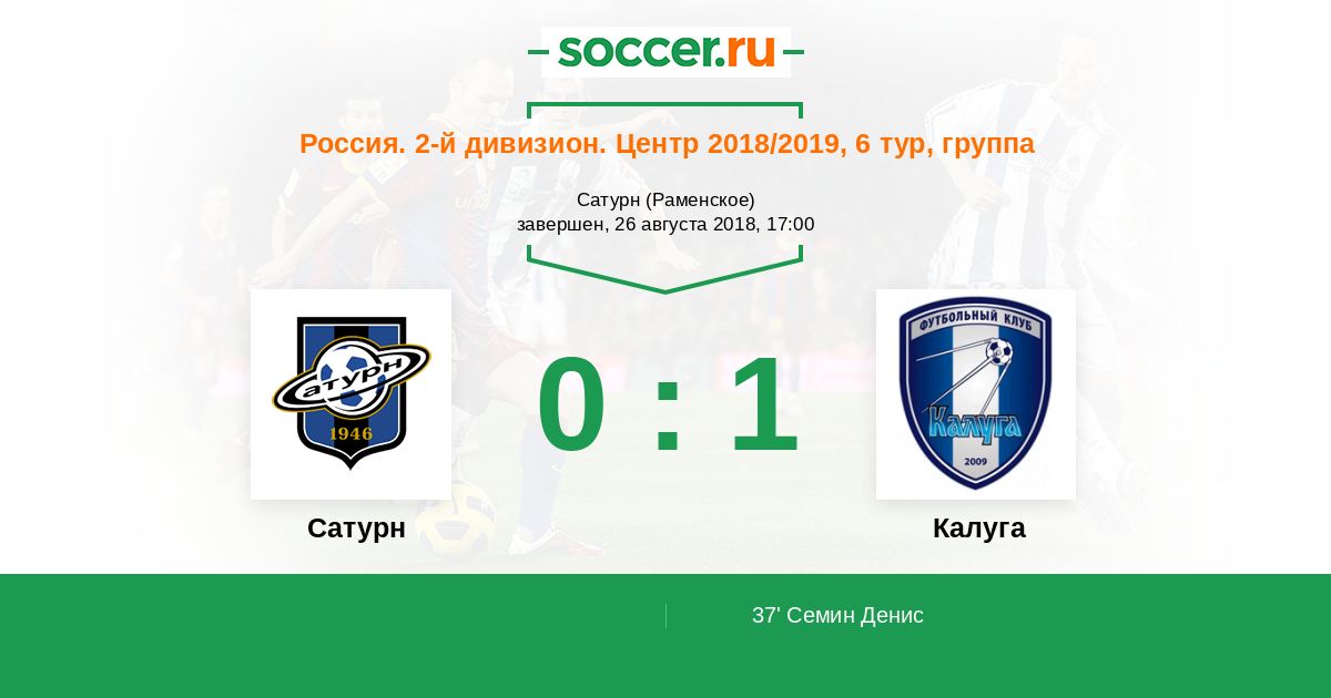 Протокол матча Сатурн против Калуга