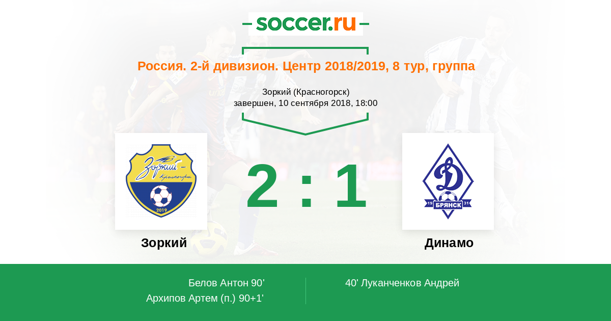 Протокол матча Зоркий против Динамо Брянск