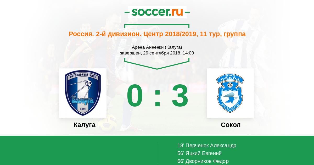 Протокол матча Калуга против Сокол
