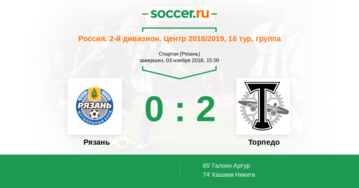 Протокол матча Рязань против Торпедо