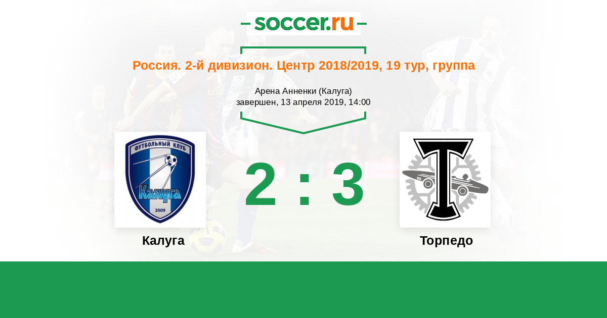 Россия. Вторая лига. Группа 3 24.04.2018 Калуга Логотип футбольный клуб Калуга 1:2 Логотип футбольный клуб Торпедо (Москва) Торпедо