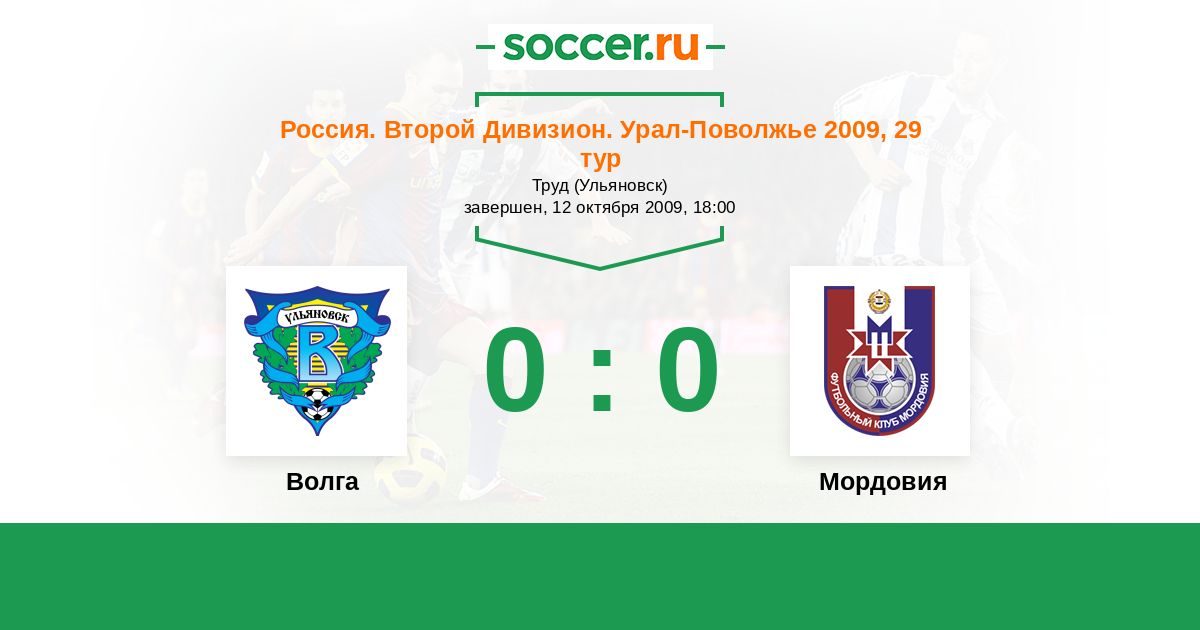 Россия. Вторая лига. Группа 3 11.10.2009 Волга Логотип футбольный клуб Волга (Ульяновск) 0:0 Логотип футбольный клуб Мордовия (Саранск) Мордовия