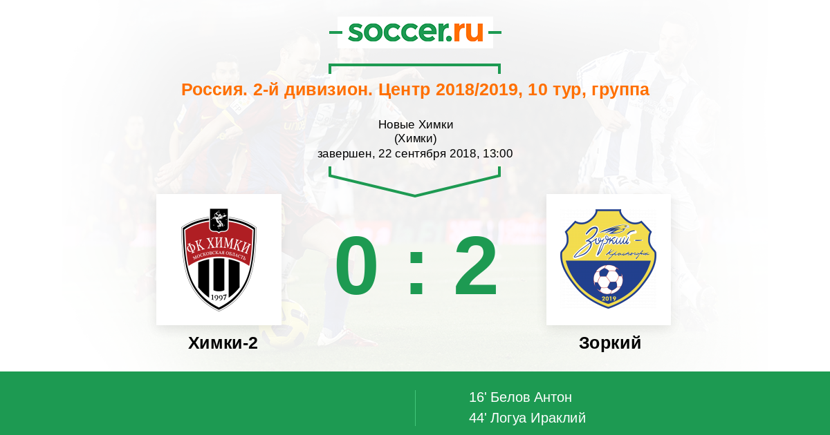 Протокол матча Химки-2 против Зоркий