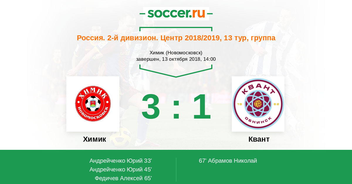Протокол матча Химик против Квант