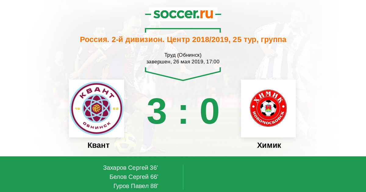 Протокол матча Квант против Химик