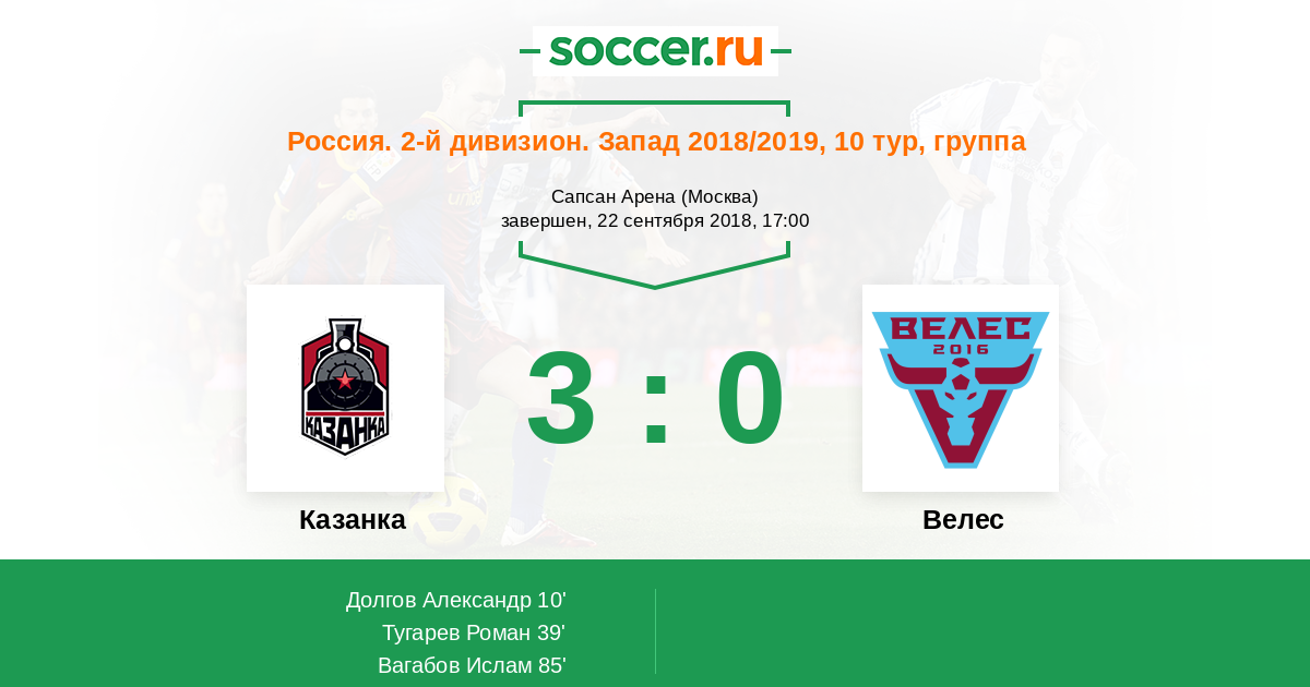 Протокол матча Казанка против Велес