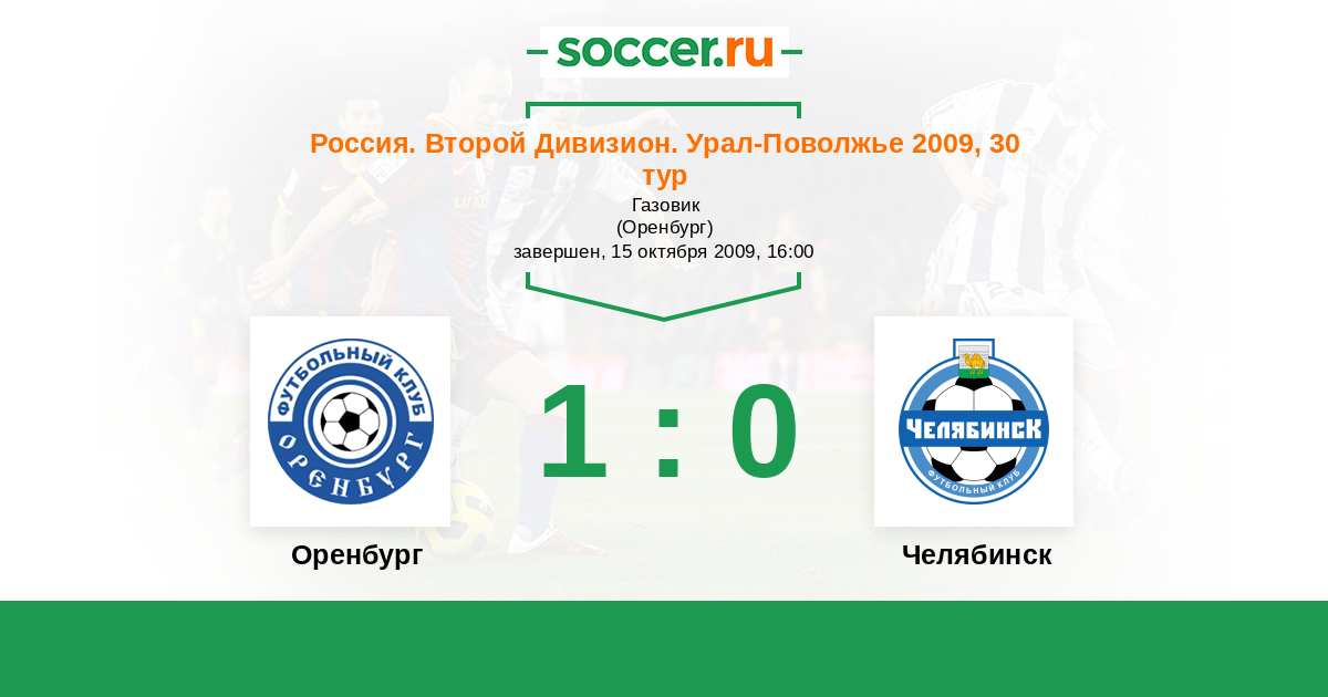 Россия. Вторая лига. Группа 4 07.07.2009 Челябинск Логотип футбольный клуб Челябинск 1:0 Логотип футбольный клуб Газовик (Оренбург) Газовик