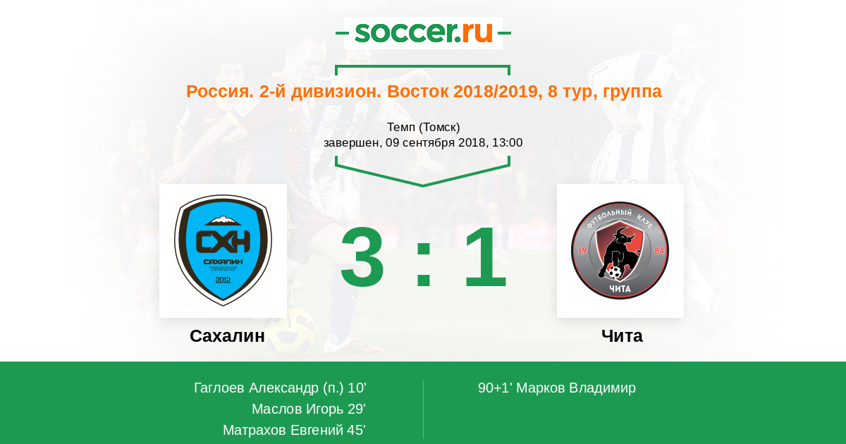 Протокол матча Сахалин против Чита