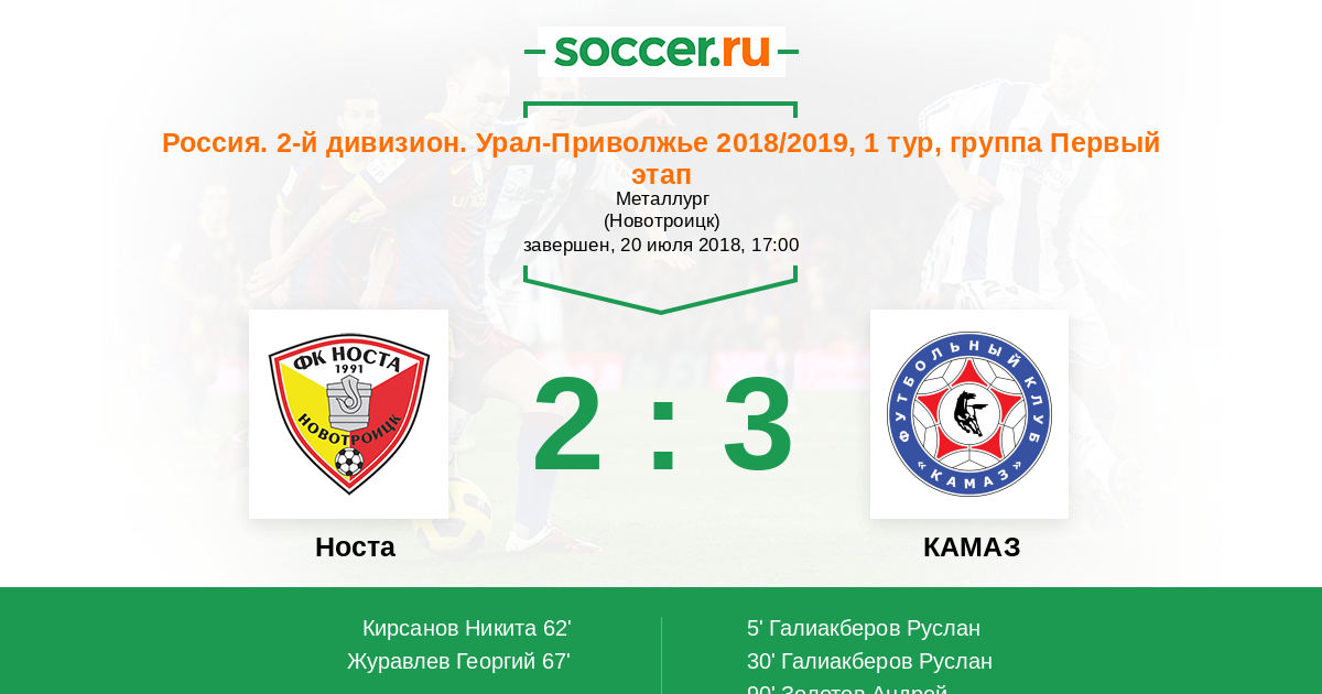 Протокол матча Носта против КАМАЗ
