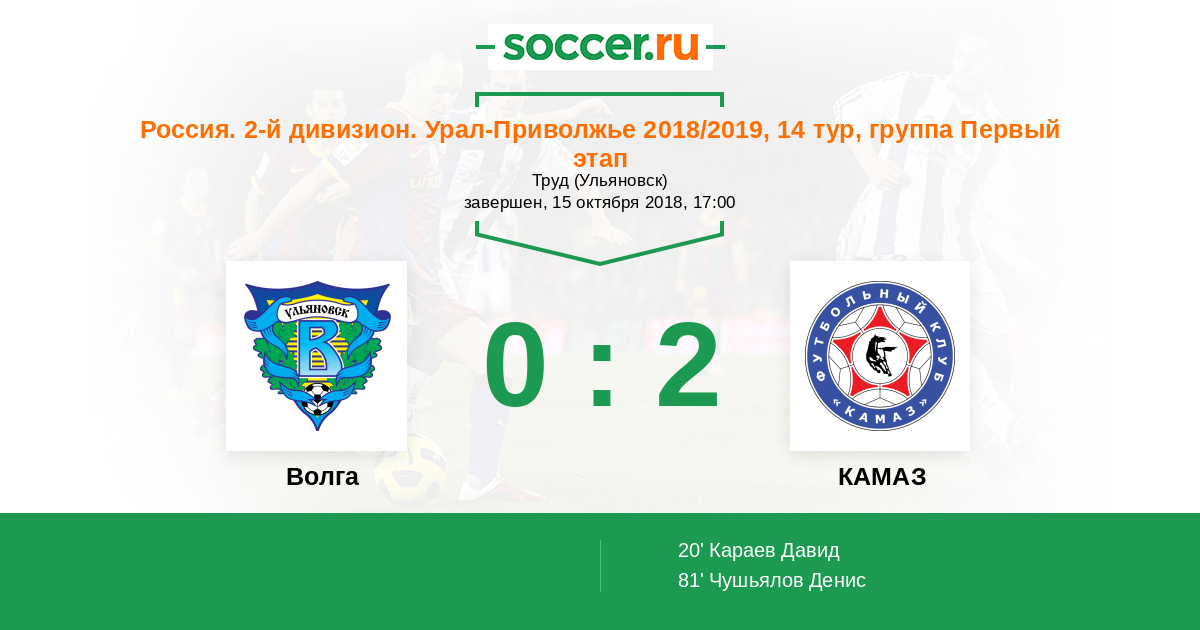 Россия. 2-й дивизион. Урал-Приволжье 2018/2019, 14 тур, группа Первый этап