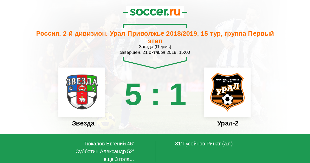 Протокол матча Звезда против Урал-2
