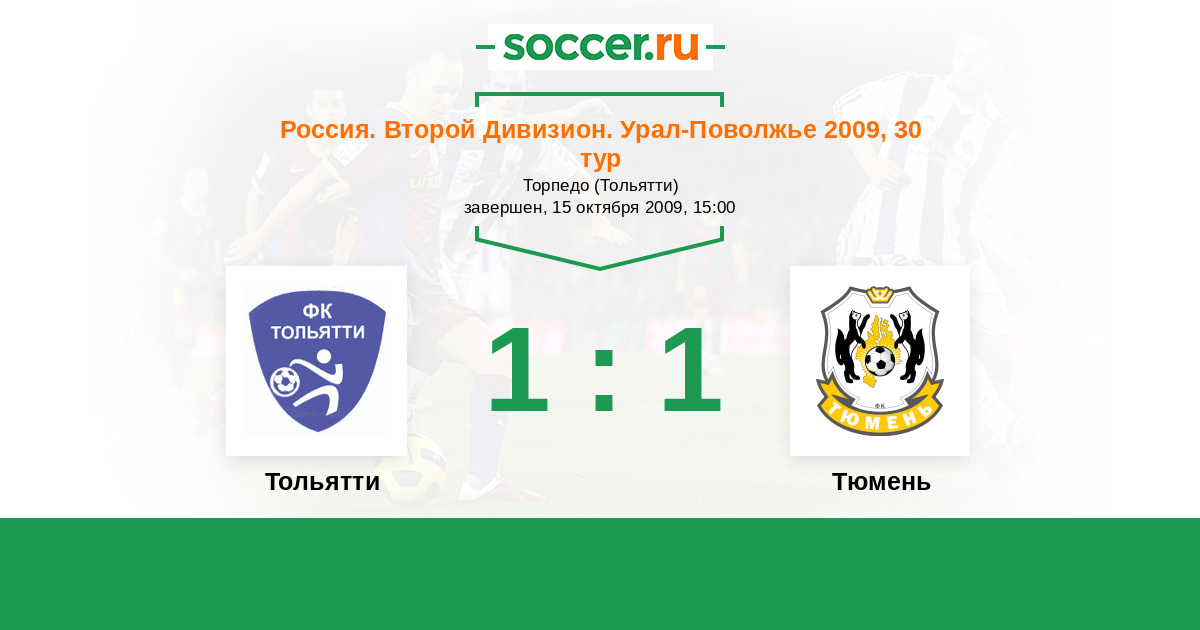 Россия. Вторая лига. Группа 4 15.10.2009 Тольятти Логотип футбольный клуб Тольятти 1:1 Логотип футбольный клуб Тюмень Тюмень