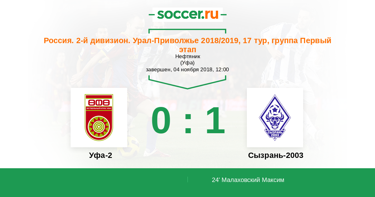 Протокол матча Уфа-2 против Сызрань-2003