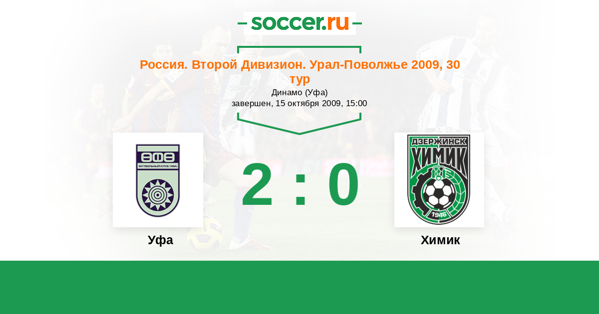 Россия. Вторая лига. Группа 4 07.07.2009 Химик Логотип футбольный клуб Химик (Дзержинск) 1:6 Логотип футбольный клуб Уфа Уфа