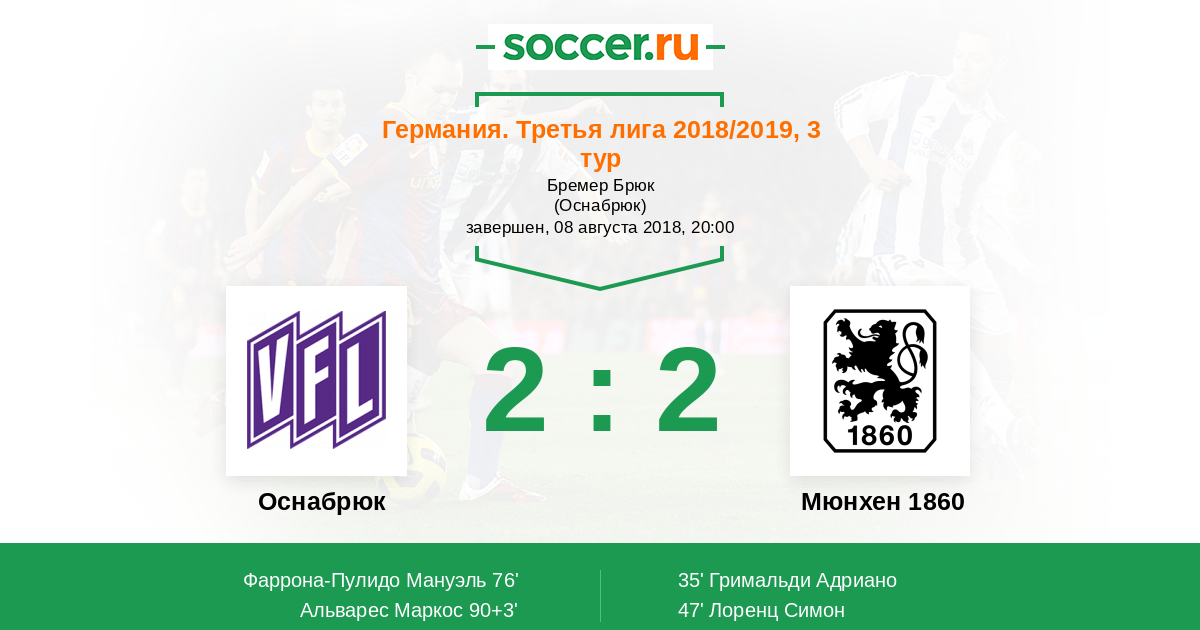 Протокол матча Оснабрюк против Мюнхен 1860