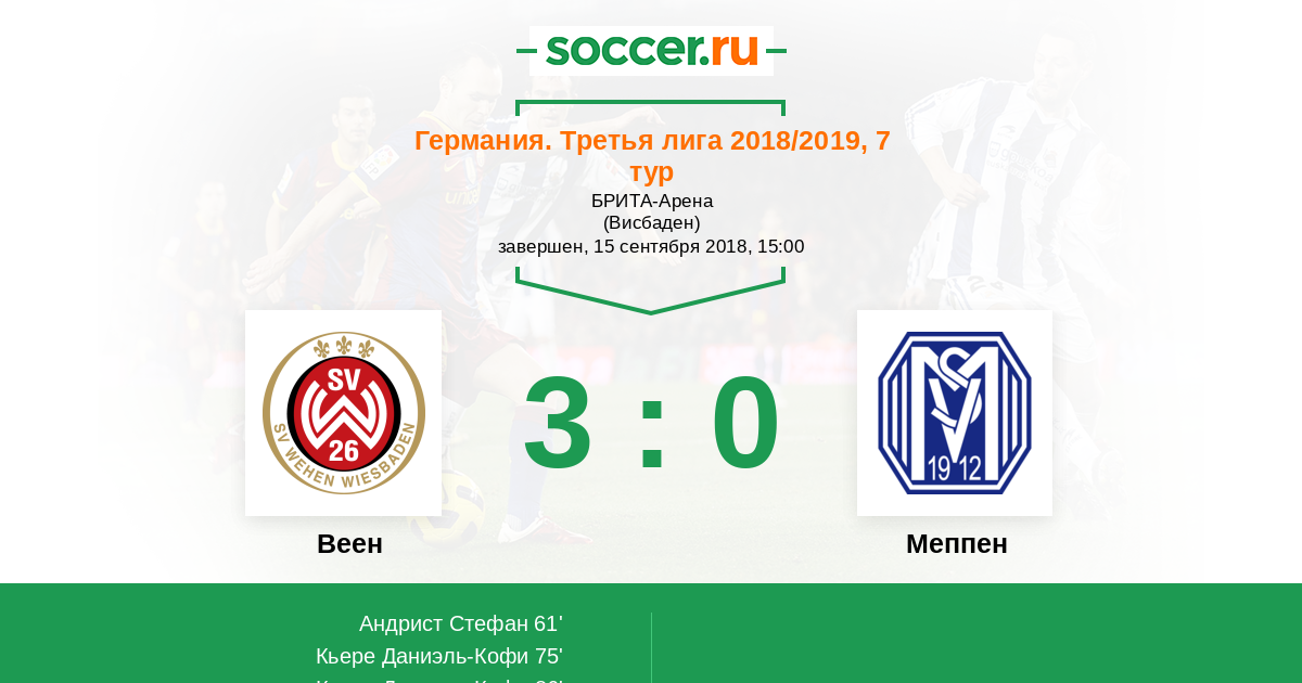 Протокол матча Веен против Меппен