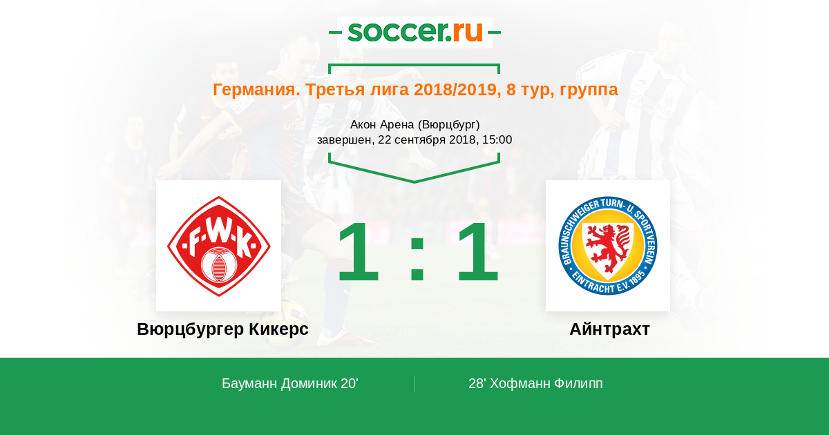 Протокол матча Вюрцбургер Кикерс против Айнтрахт