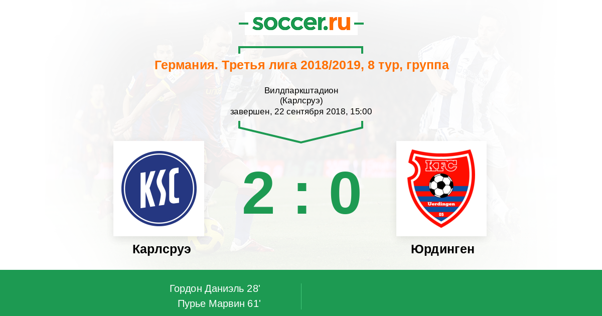 Протокол матча Карлсруэ против Юрдинген