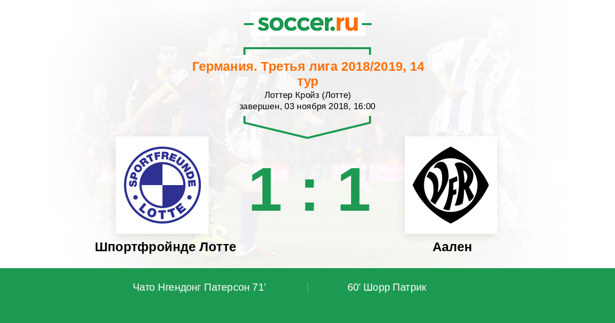 71' (1:1) Чато Нгендонг Патерсон (15) (Хофманн Йонас (6))