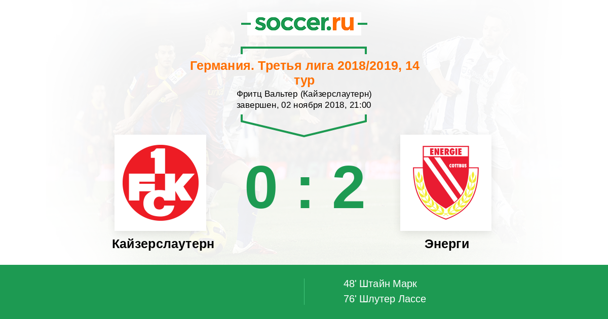 Протокол матча Кайзерслаутерн против Энерги